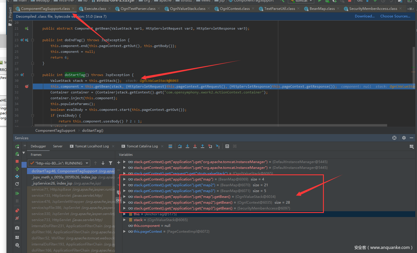 首先找到**struts2**标签解析的入口,也是我们本次漏洞**Debug**跟踪的重点。