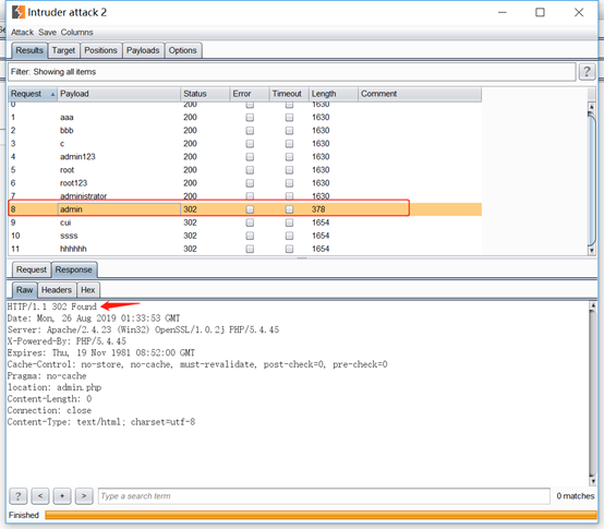 根据枚举出来的用户名,然后枚举密码,可以看到成功枚举密码