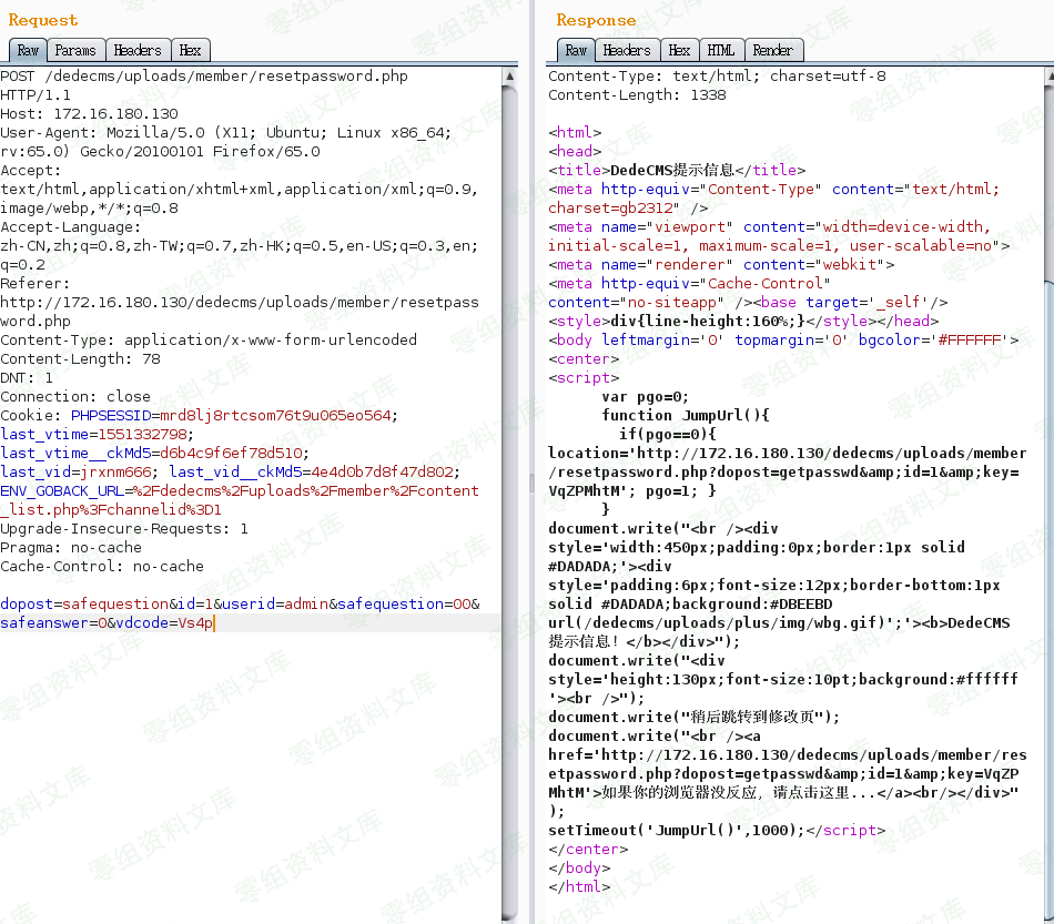 dedecms的/member/resetpassword.php就是用来处理用户密码重置的问题,问题出在75行开始处理验证密保问题处。