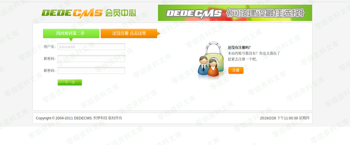 (SSV-97074)DeDecms 前台任意用户密码修改¶