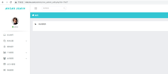 定位到漏洞点,url:http://mkcms.com/admin/cms_admin_edit.php?id=1(mkcms.com为本地静态!)