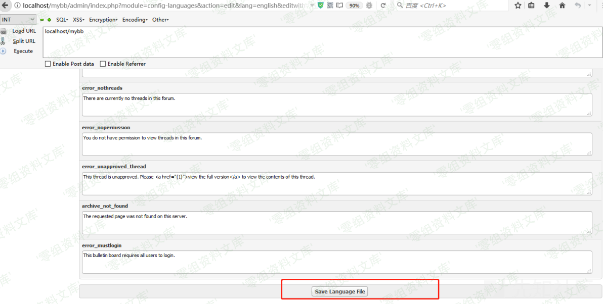 点击save user发现文件已经上传成功,并且avataruploadpath也修改成功,下面进行包含操作,访问url:http://www.0-sec.org/mybb/admin/index.php?module=config-languages&action=edit&lang=englishConfig模块下的languages下,
