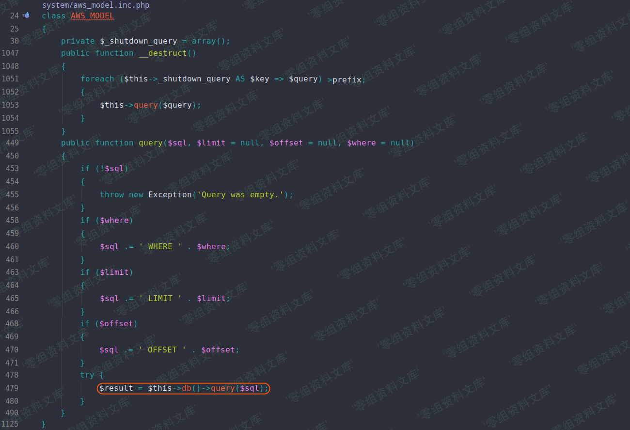 system/aws_model.inc.php:__destruct() 方法中存在任意 SQL 语句执行。