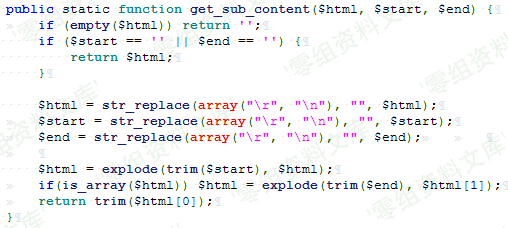 $data``[``'content'``] = self::replace_item(self::get_sub_content(``$html``, ``$config``[``'content_rule'``][0], ``$config``[``'content_rule'``][1]), ``$config``[``'content_html_rule'``]); ``return` `$data``;